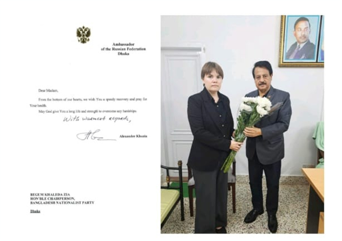 রাশিয়ান রাষ্ট্রদূতের পক্ষে দূতাবাসের এক উচ্চপদস্থ কর্মকর্তা ফুলের তোড়া ও পত্র নিয়ে গুলশানের চেয়ারপার্সনের কার্যালয়ে আসেন। চেয়ারপার্সনের